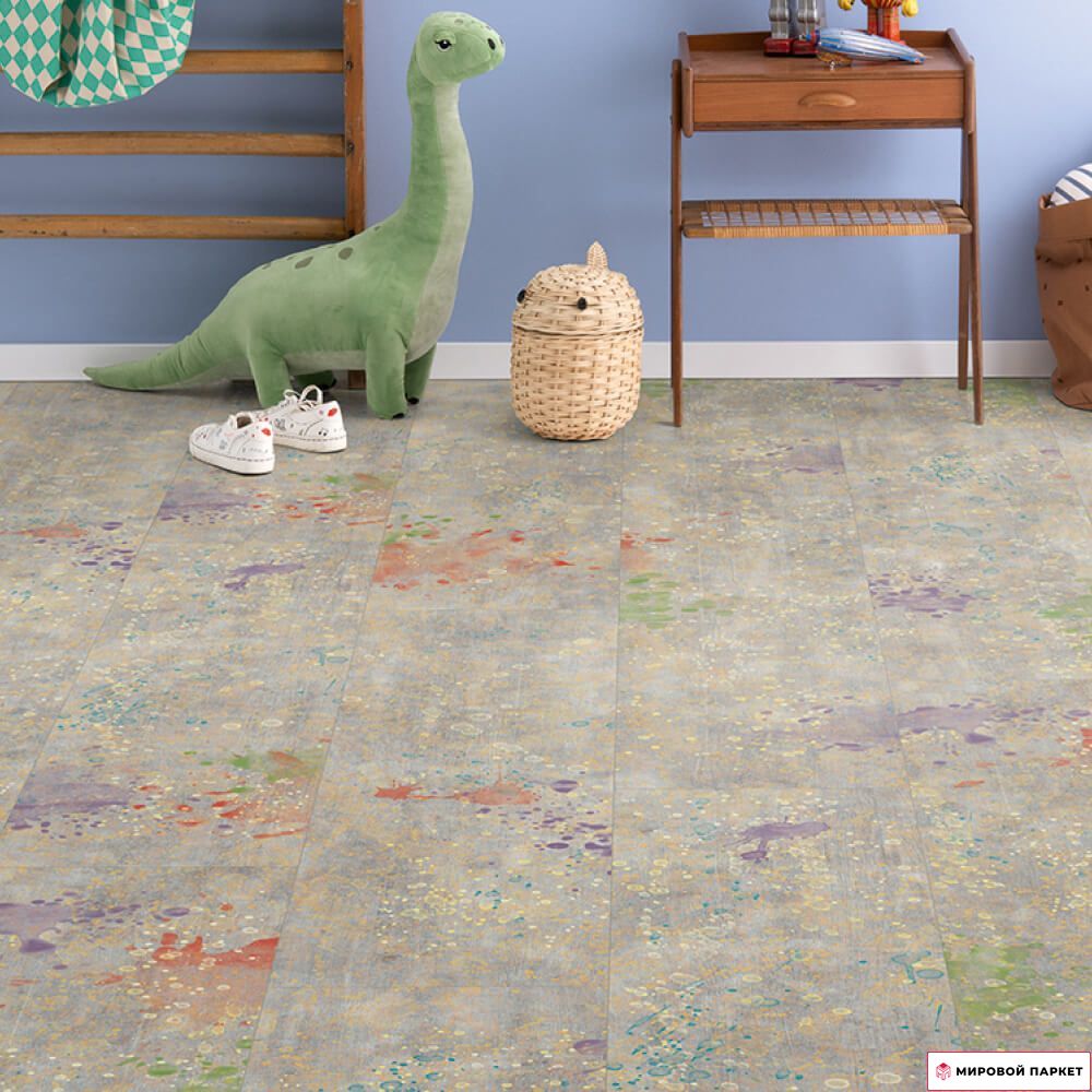 Пробковый пол Мелара — оригинальный декор в формате плитки немецкого производства. Декор выполнен в серых оттенках с использованием цифровой печати с V-образной фаской по периметру.