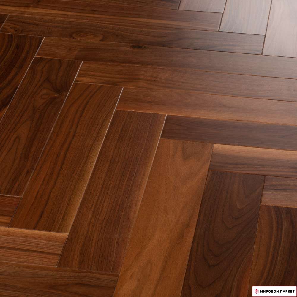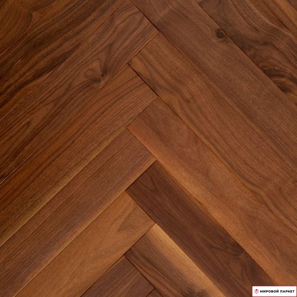 Инженерная доска Royal Parket Английская ёлка Орех Ориджинал — это качественное напольное покрытие, созданное из натурального дерева. Оно представляет собой однополосную доску из ореха с тёмно-коричневым цветом и 4-х сторонней фаской.