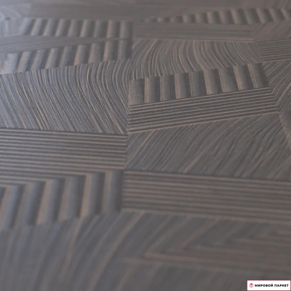 Ламинат имеет тёмный коричневый оттенок, который прекрасно сочетается с различными стилями интерьера. Матовая поверхность и синхронное тиснение создают эффект натурального дерева, придавая полу роскошный и элегантный вид.