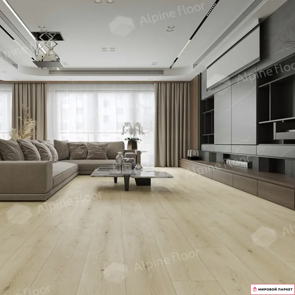 Этот ламинат класса использования 33 (AC5) от производителя Alpine Floor подходит для различных помещений: от гостиной и детской до кухни и дачи. Благодаря своей толщине в 8 мм, он обеспечивает прочность и надёжность, а оттенок светлого бежевого цвета и однополосный дизайн создают уютную атмосферу.