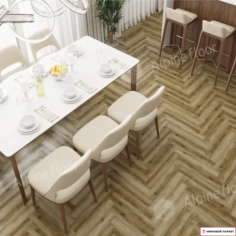 Ламинат Alpine Floor Herringbone 12 Pro Марсель LF106-09 — надёжное и эстетичное напольное покрытие, предназначенное для интенсивного использования в помещениях различного назначения. Он обладает повышенной устойчивостью к царапинам, истиранию и ударам, что делает его идеальным выбором для дома, офиса или общественных помещений с высокой проходимостью.