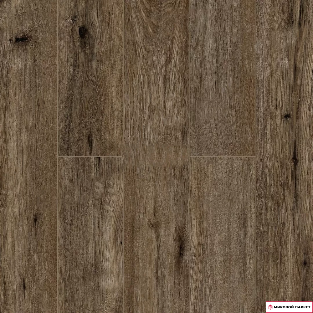 Дизайн ламината выполнен в насыщенном коричневом цвете и имеет однополосный дизайн с древесным рисунком дуба. Текстура поверхности с тиснением в регистр придаёт покрытию естественный и привлекательный вид, создавая ощущение настоящего деревянного пола. Благодаря фаске по четырём сторонам каждая доска выделяется, что добавляет изысканности и глубины.