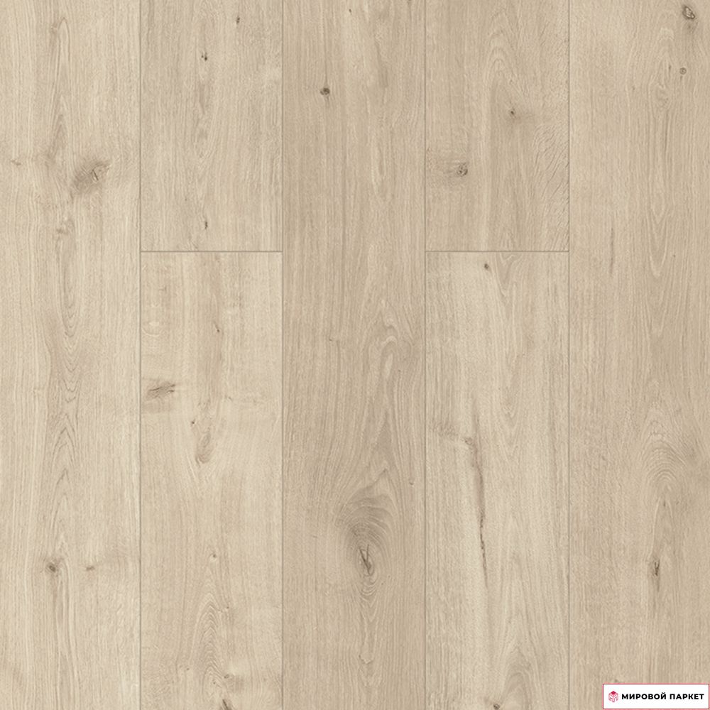 Ламинат имеет светлый оттенок и бежевый цвет, а также дизайн под однополосный дуб с матовой поверхностью и тиснением в регистр. Благодаря этому, он выглядит как натуральная древесина и создаёт уютную атмосферу в помещении. Покрытие обладает антибактериальной и антистатической поверхностью, что делает его безопасным для здоровья и лёгким в уходе. Тип соединения – замковое, что позволяет собирать ламинат по одной доске, не требуя специальных навыков или инструментов. Это обеспечивает быструю и лёгкую укладку.