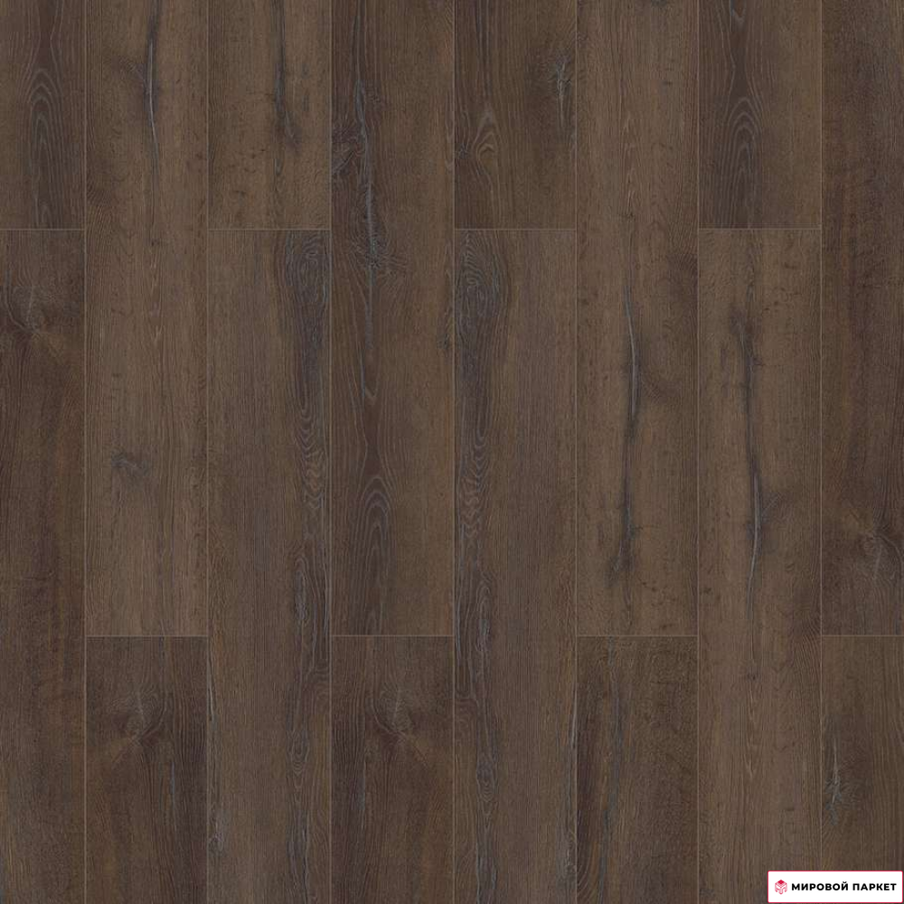 Оттенок и цвет ламината — темно-коричневый, с древесным рисунком под дуб. Этот дизайн придаёт полу натуральный и тёплый вид, создавая уютную атмосферу в помещении. Текстура поверхности с тиснением в регистр добавляет ещё больше реалистичности и естественности.