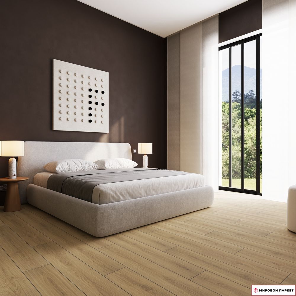 Толщина 8 мм обеспечивает дополнительную шумоизоляцию и устойчивость, а фаска по краям придает полу натуральный вид, имитируя фактуру натурального дерева. Покрытие площадью 1.9948 м² удобно в укладке и создает эффект монолитного пола без видимых стыков.
