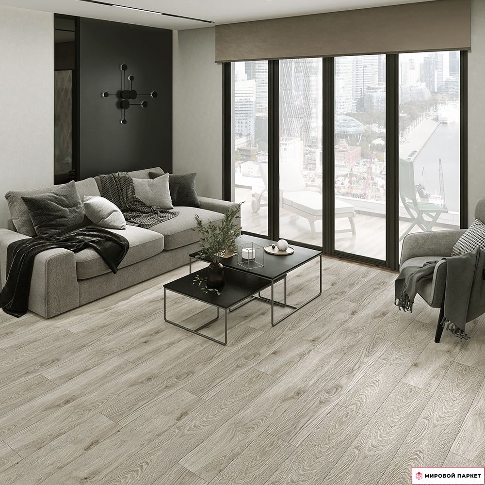 Данный ламинат имеет натуральный серый оттенок и дизайн под однополосный дуб с полуматовой поверхностью. Текстура поверхности синхронная, что придаёт ей естественный вид. Тип рисунка — древесина, а фаска присутствует по всем четырём сторонам доски. Это создаёт эффект натурального деревянного пола. Ламинат Kronostar Biom подходит для различных помещений: гостиной, детской, кухни, дачи, загородного дома. Его можно использовать как для основной отделки, так и в качестве акцента в интерьере. Он легко монтируется благодаря замковому соединению, которое позволяет собирать пол по одной доске.