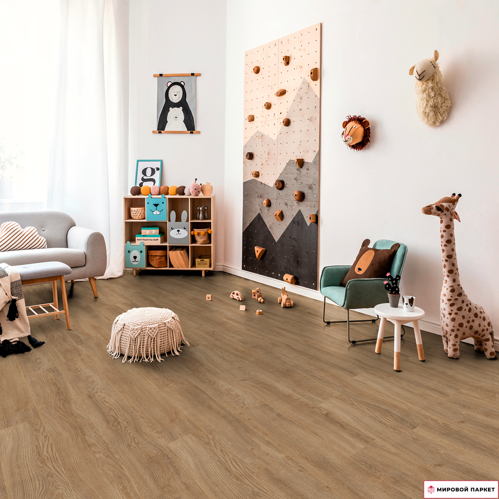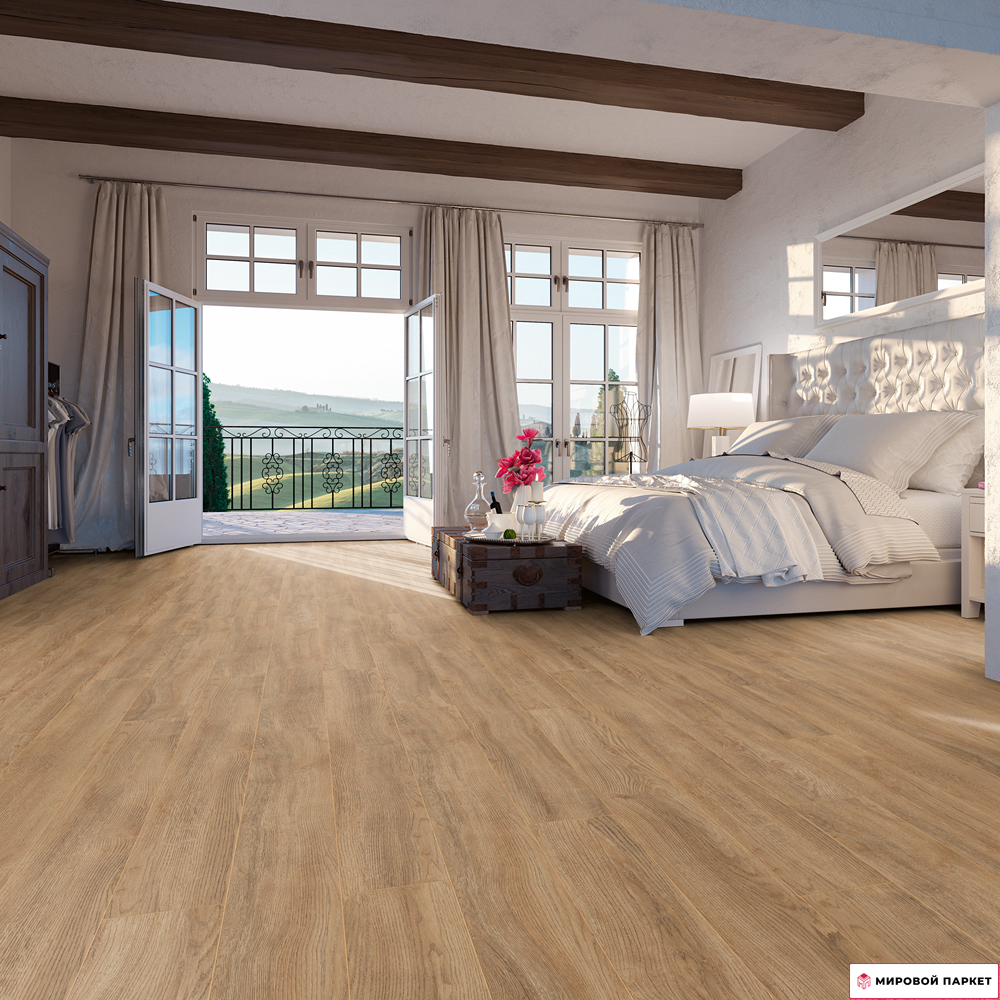 Полуматовая поверхность ламината не только приятна на ощупь, но и добавляет изысканности и благородства в интерьер вашего дома или офиса. Ламинат имеет однополосный дизайн, имитирующий древесину дуба, благодаря чему смотрится очень естественно и гармонично вписывается в различные стили оформления помещения. Синхронная текстура поверхности усиливает эффект натуральности материала. Фаски по четырём сторонам каждой доски придают покрытию законченный вид и создают иллюзию традиционного паркетного пола. Этот ламинат подойдёт как для жилых помещений — гостиной, детской, кухни, так и для общественных мест — гостиниц, офисов, госучреждений. А также отлично будет смотреться на даче. Он устойчив к воздействию влаги и может быть использован в помещениях с повышенной влажностью, имеет антибактериальную и антистатическую поверхность, что делает его удобным и безопасным для использования.