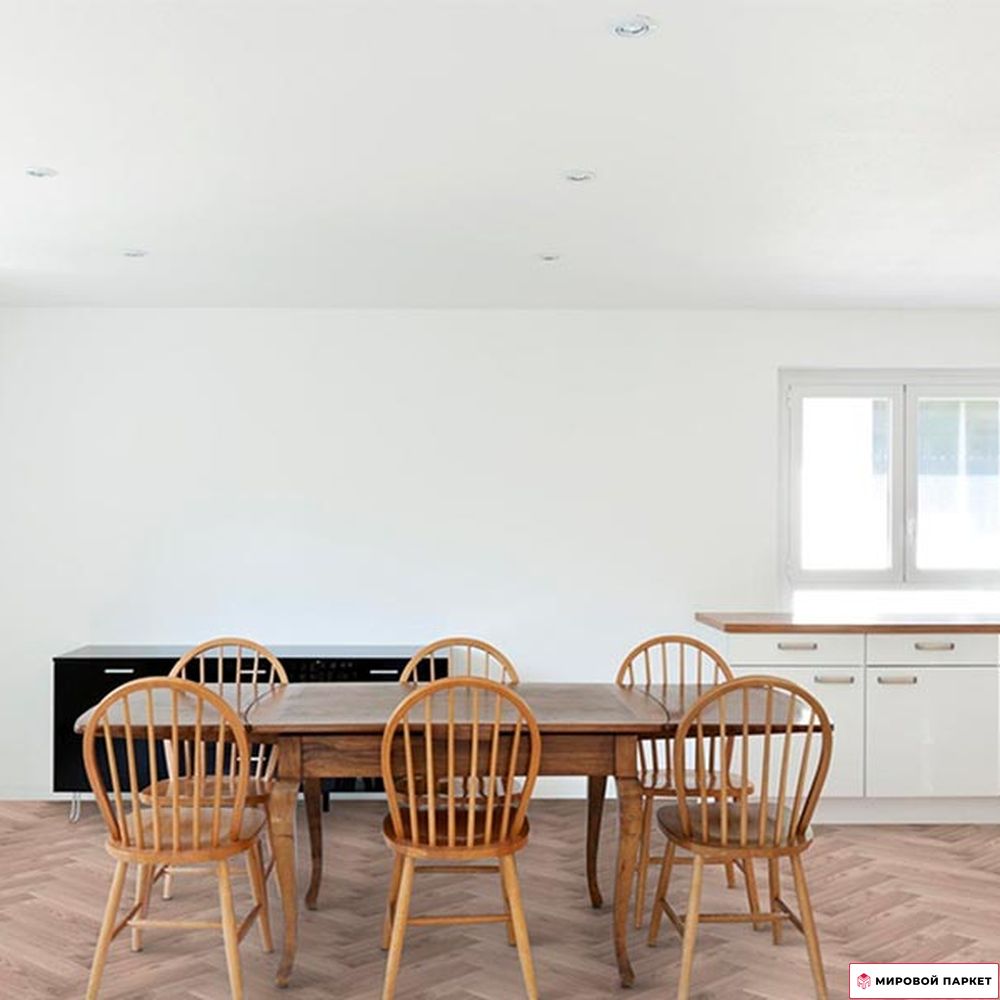Дизайн: Укладка "елочка" создает эффект классического паркетного пола, добавляя помещению изысканности и уюта.