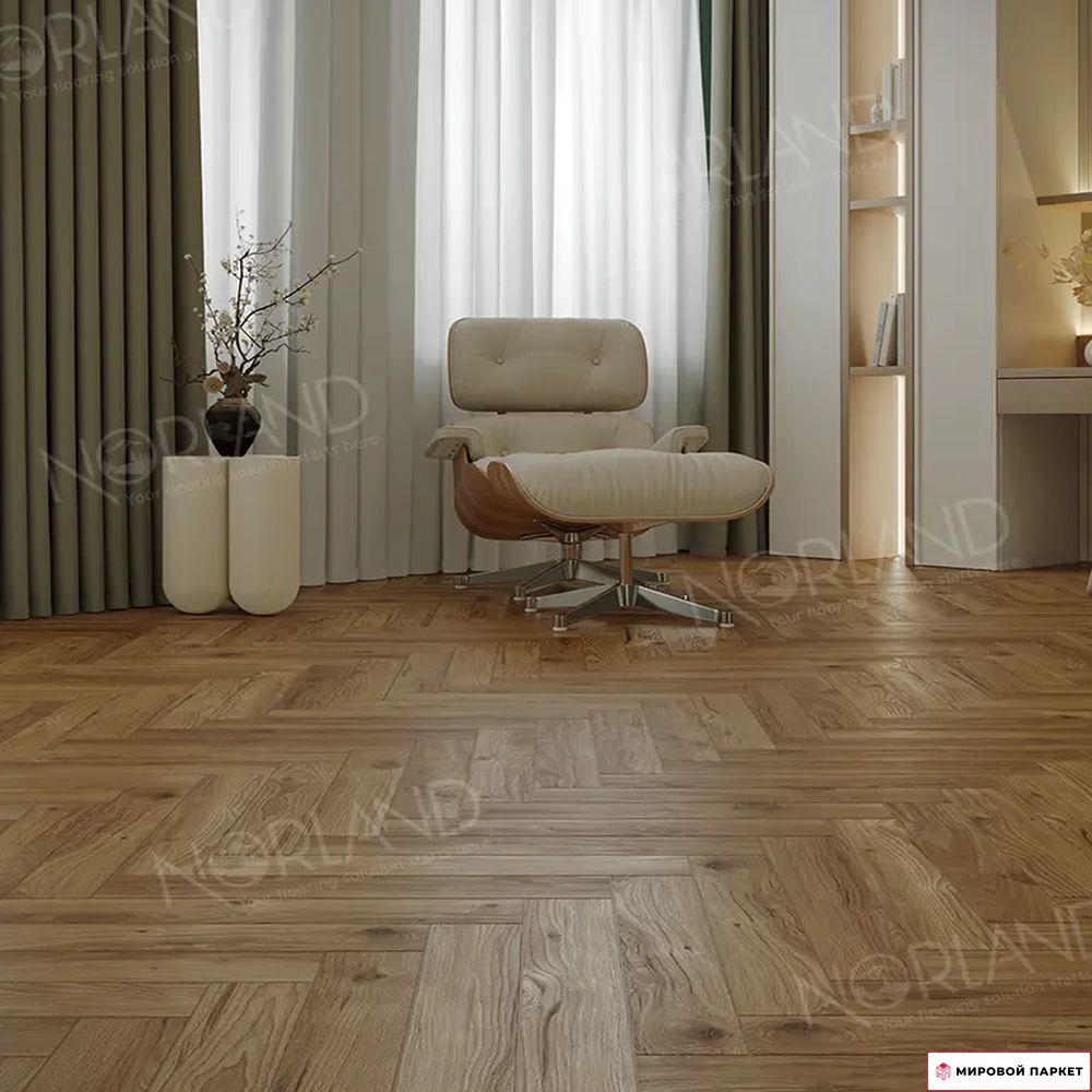Ламиат Norland Herringbone Elegant Дуб Корсика LF303-18 – это идеальное решение для тех, кто хочет создать в своем доме атмосферу уюта и элегантности с помощью красивого и практичного напольного покрытия.
