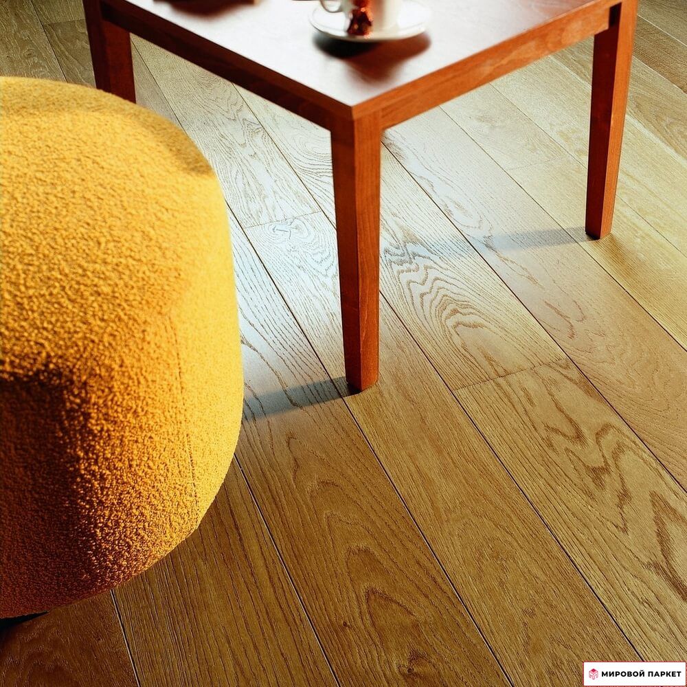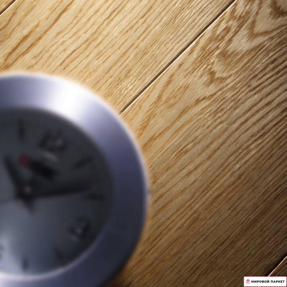 Износостойкость: Благодаря лаковому покрытию и высокой плотности дуба, доска устойчива к механическим повреждениям.