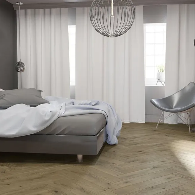 Эстетика: Узор «французская елка» придает полу уникальный вид, а микрофаска добавляет легкий объем и подчеркивает натуральность.