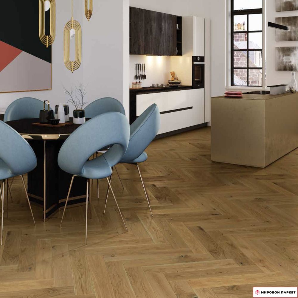 Паркетная доска Barlinek Французская елка Дуб Shetland (Mainland) – это элегантное напольное покрытие, сочетающее изысканный узор «французская елка» с натуральной красотой дуба. Светлый оттенок и лаковое покрытие создают уютную и современную атмосферу, подчеркивая изысканность интерьера.