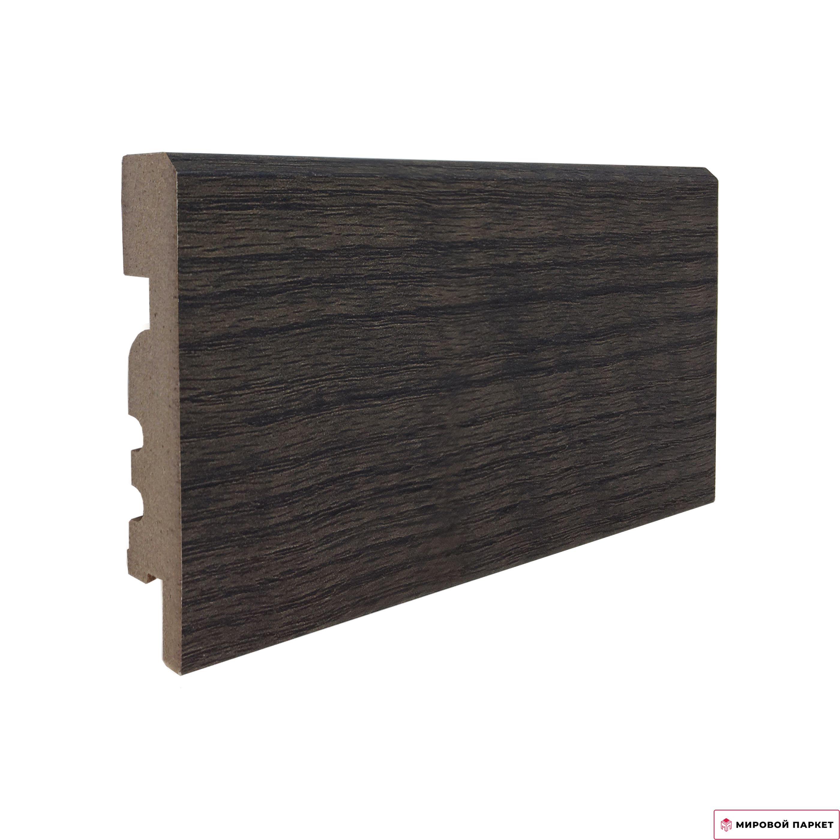 Цена указана за 1 погонный метр. Ламинированный, основа МДФ, темно-коричневый оттенок. Размер плинтуса 2400х70х16 мм.