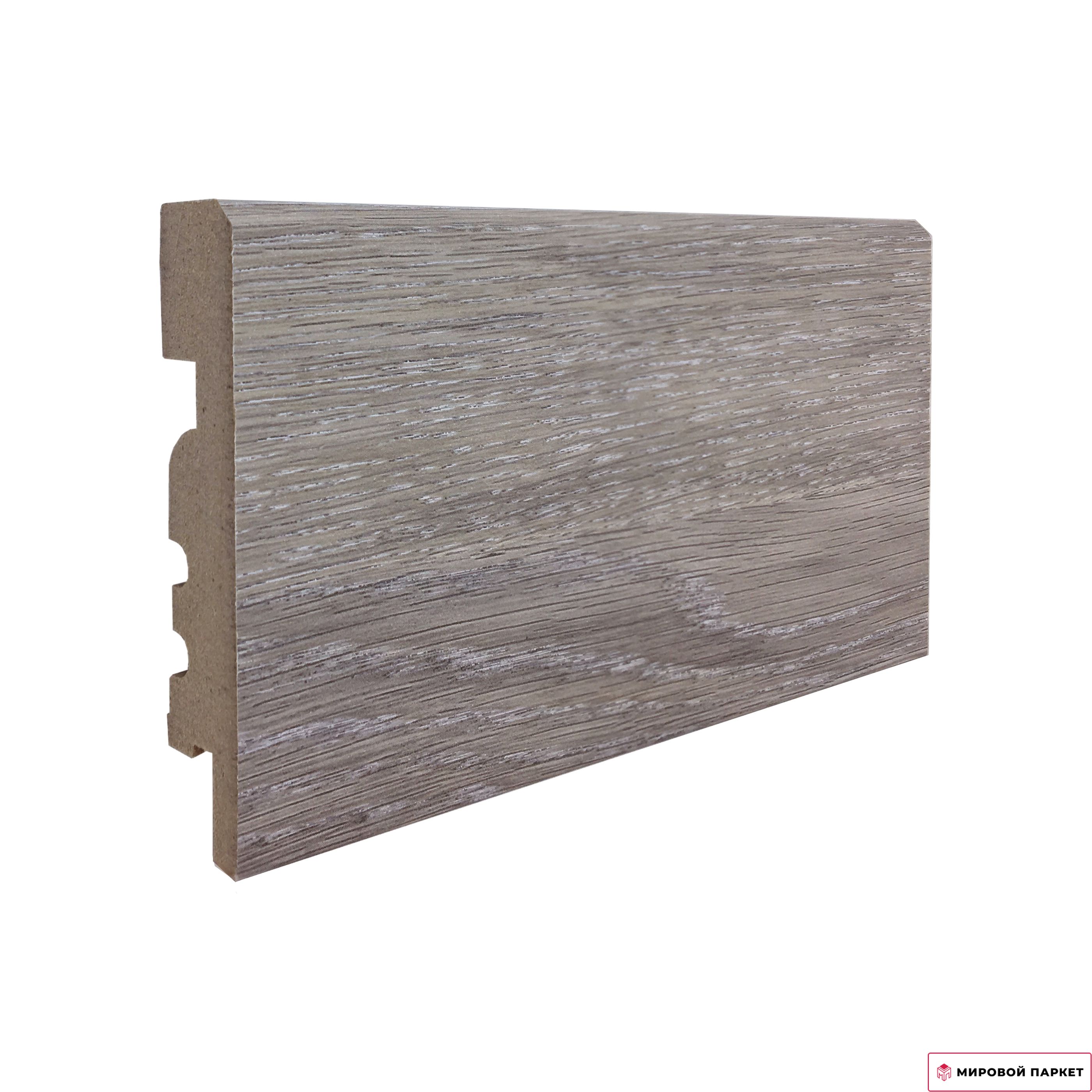Цена указана за 1 погонный метр. Ламинированный, основа МДФ, серо-коричневый оттенок. Размер плинтуса 2400х70х16 мм.