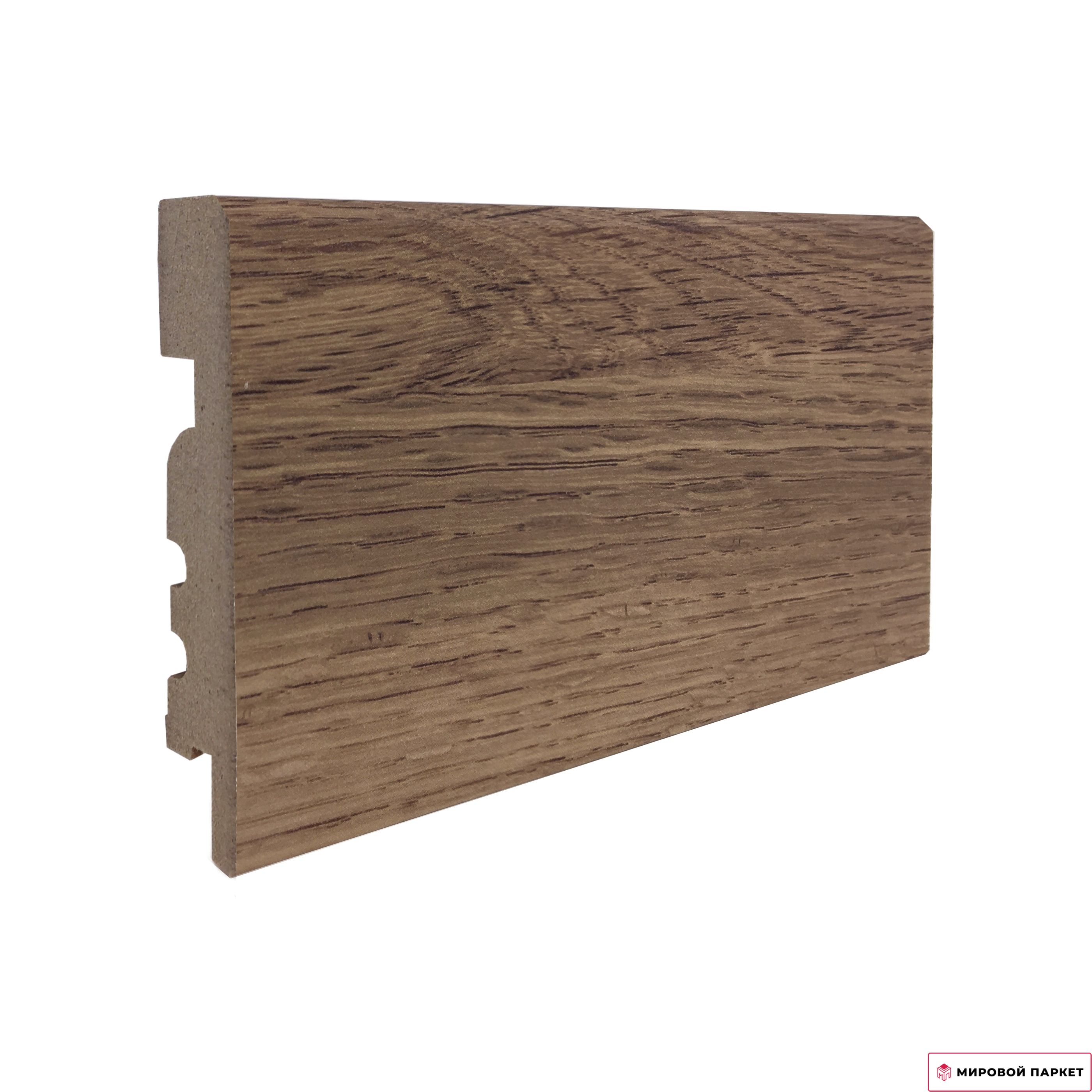 Цена указана за 1 погонный метр. Ламинированный, основа МДФ, темно-коричневый оттенок. Размер плинтуса 2400х70х16 мм.