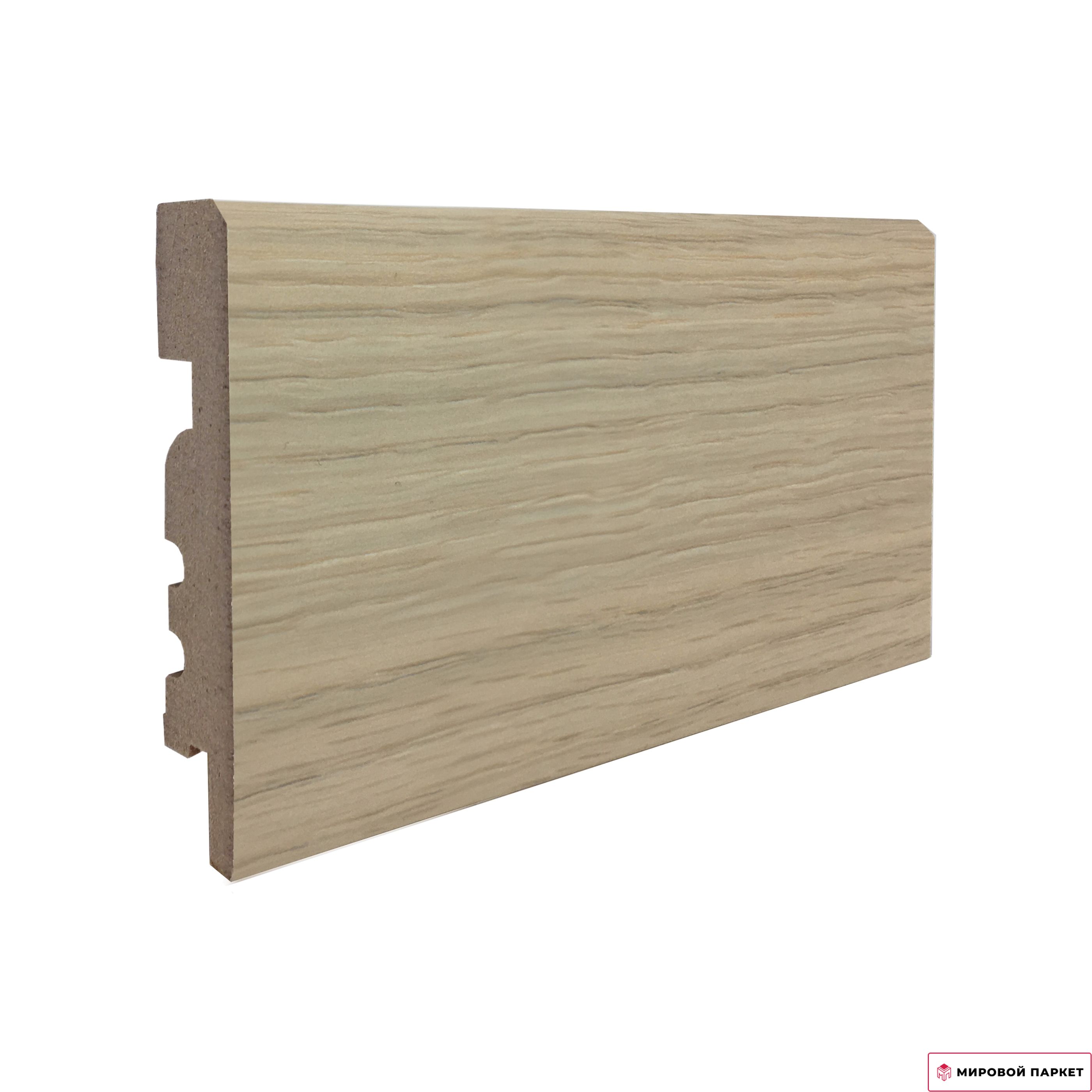 Цена указана за 1 погонный метр. Ламинированный, основа МДФ, бежевый оттенок. Размер плинтуса 2400х80х16 мм.