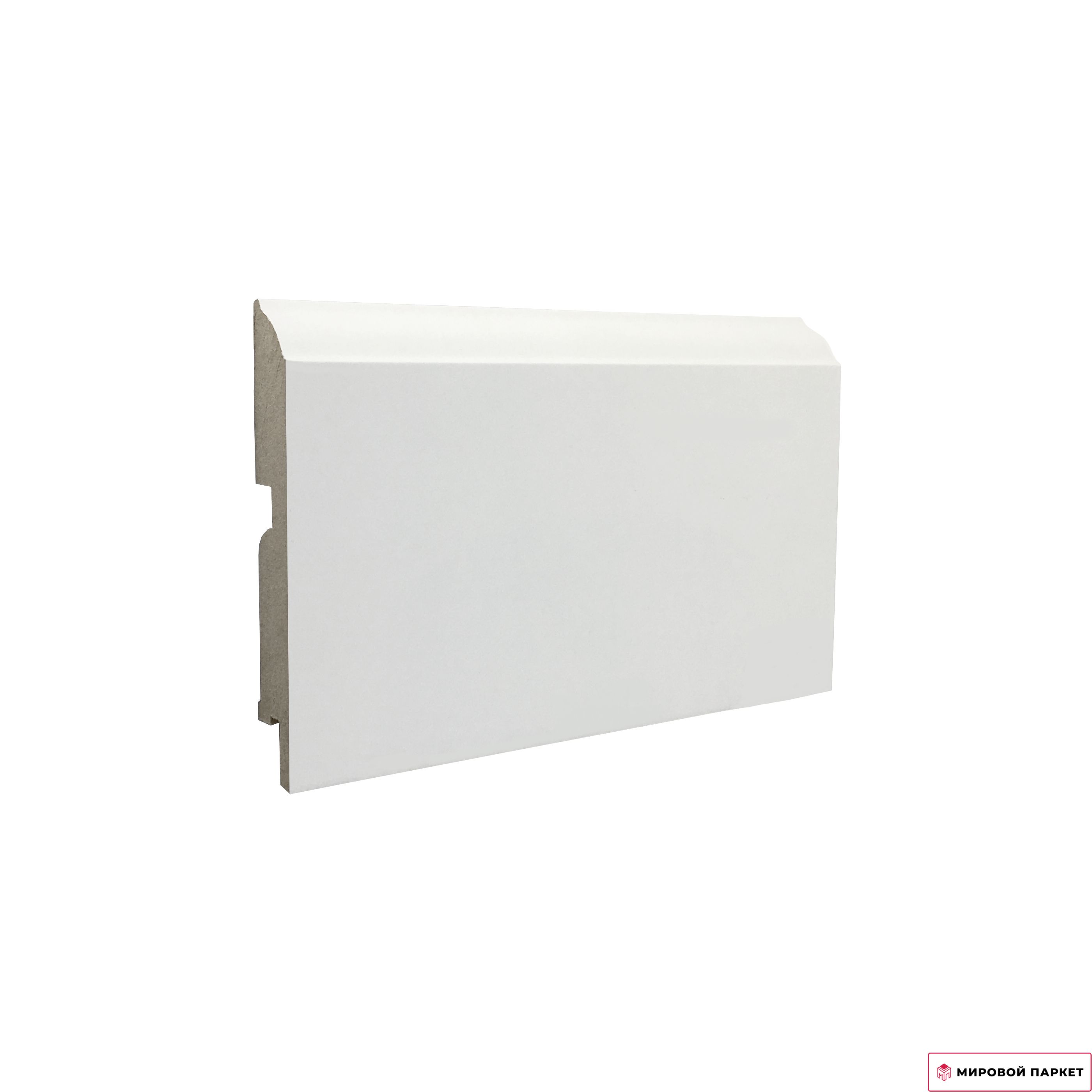Цена указана за 1 погонный метр. Ламинированный, основа МДФ, белый. Размер плинтуса 2400х100х16 мм.