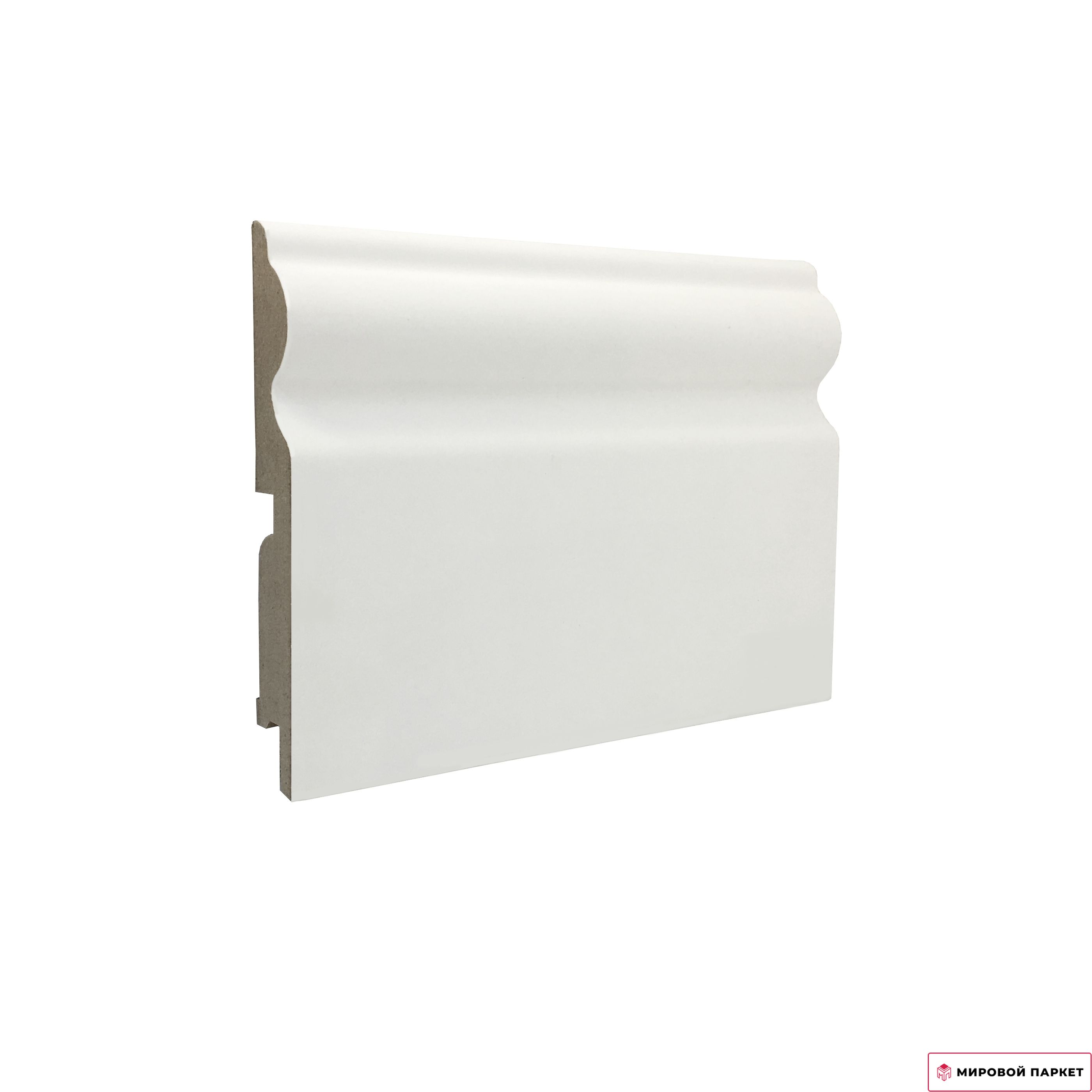 Цена указана за 1 погонный метр. Ламинированный, основа МДФ, белый. Размер плинтуса 2400х115х16 мм.