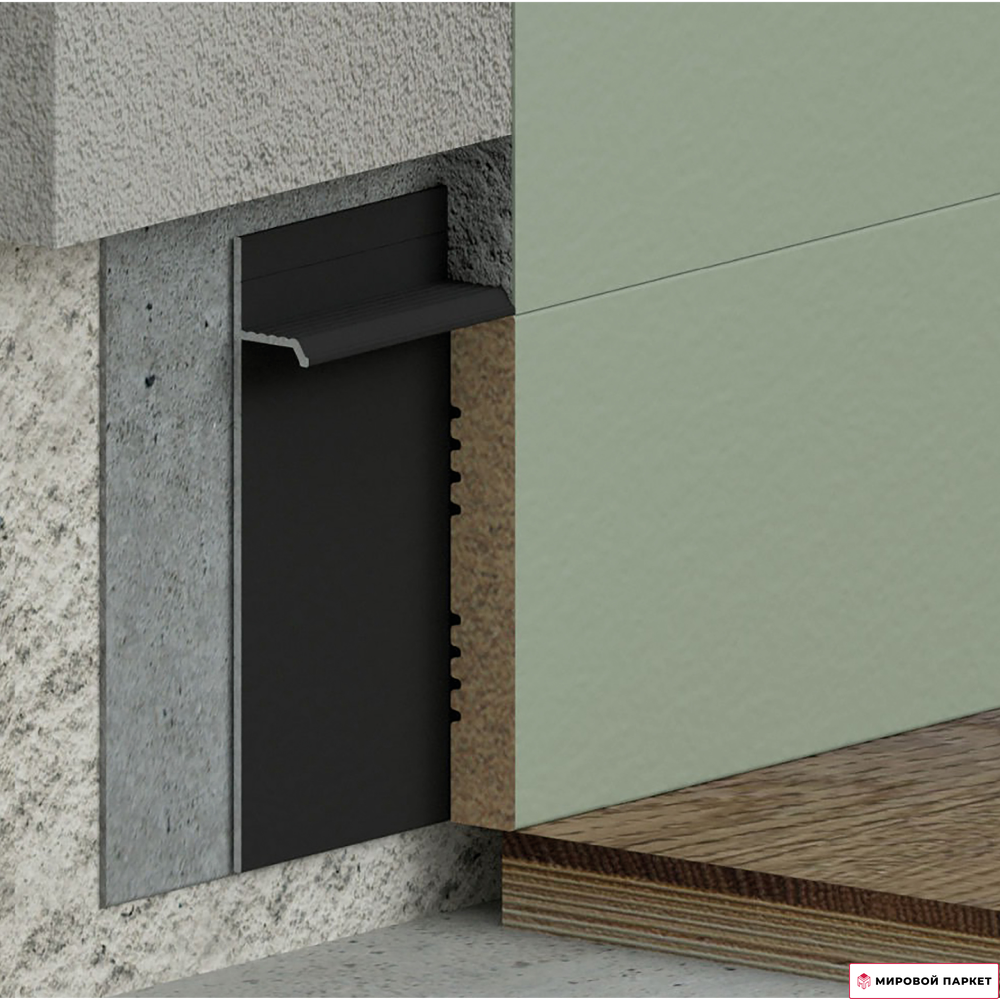 Изготовлен из алюминия, что обеспечивает долговечность и надежность. Благодаря своим характеристикам, плинтус подходит для использования в помещениях с высокой влажностью и нагрузками на пол, например, в ванных комнатах, кухнях и коридорах.