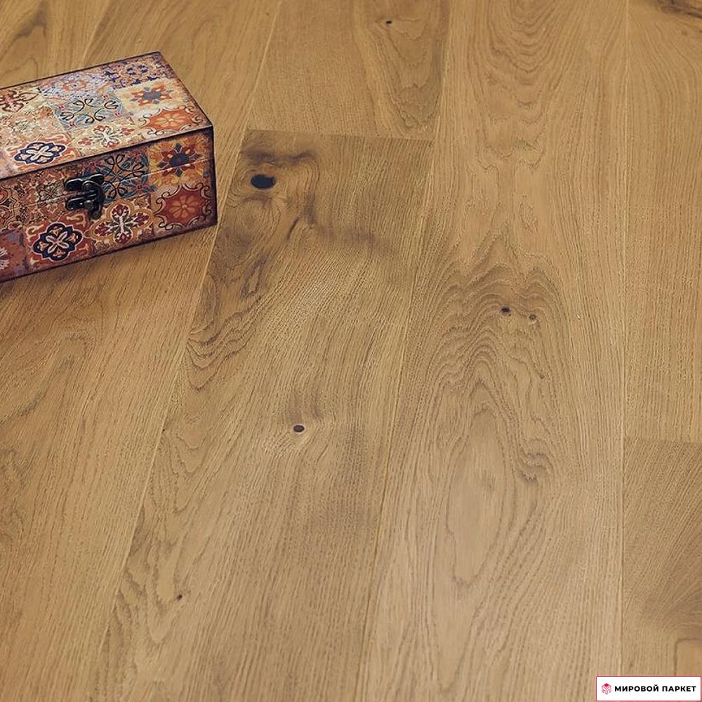 Покрытие: Масло, которое подчеркивает натуральную текстуру древесины, придает полу матовый эффект и обеспечивает защиту от влаги и легких механических повреждений.